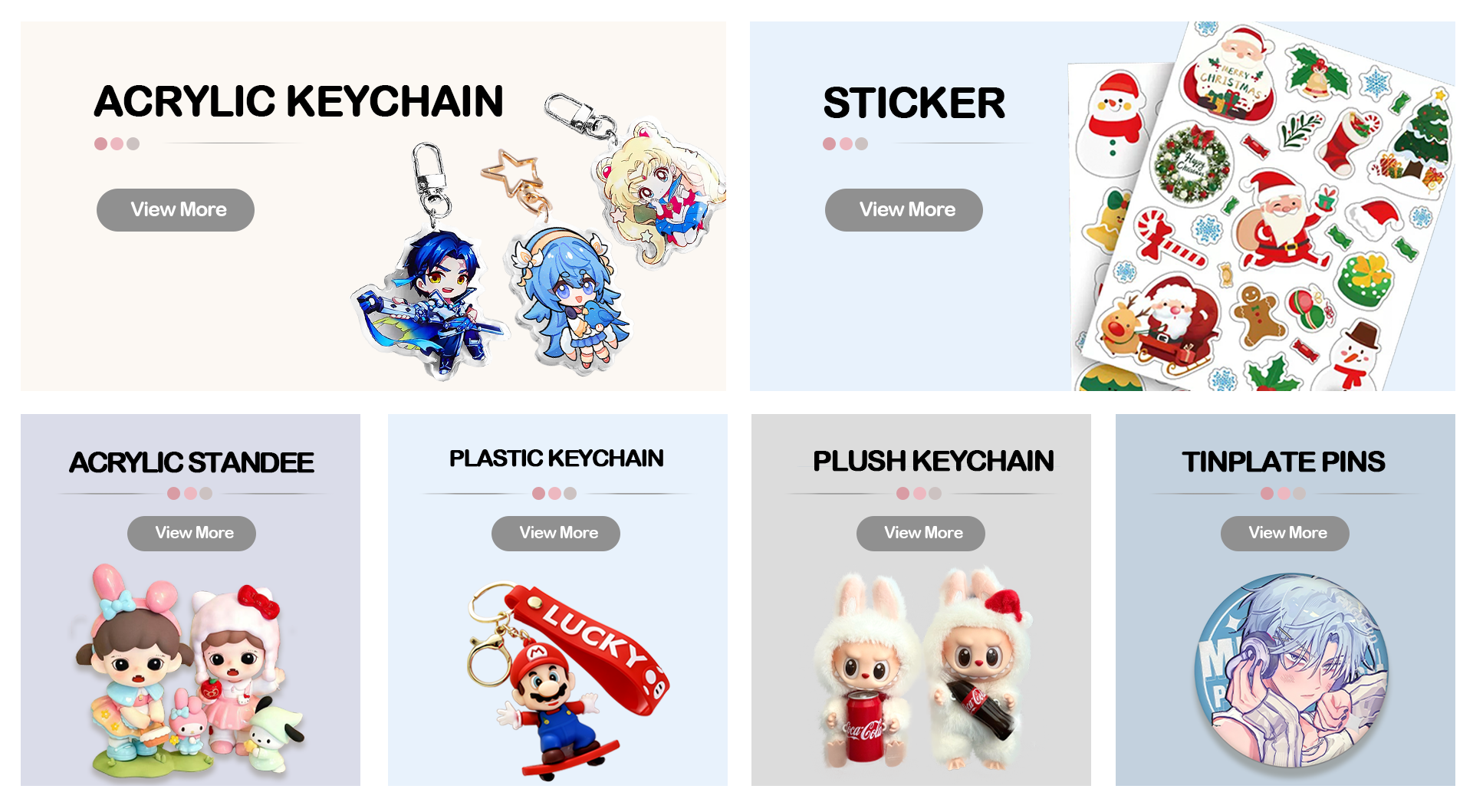 Productos principales:Caja ciega, llaveros, muñeca, ropa de muñeca, tarjeta